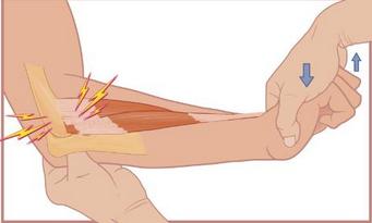 ◆ 上臂外侧肘部屈曲的正下方,反复疼痛,偶尔疼痛手臂向下放射到手腕部。